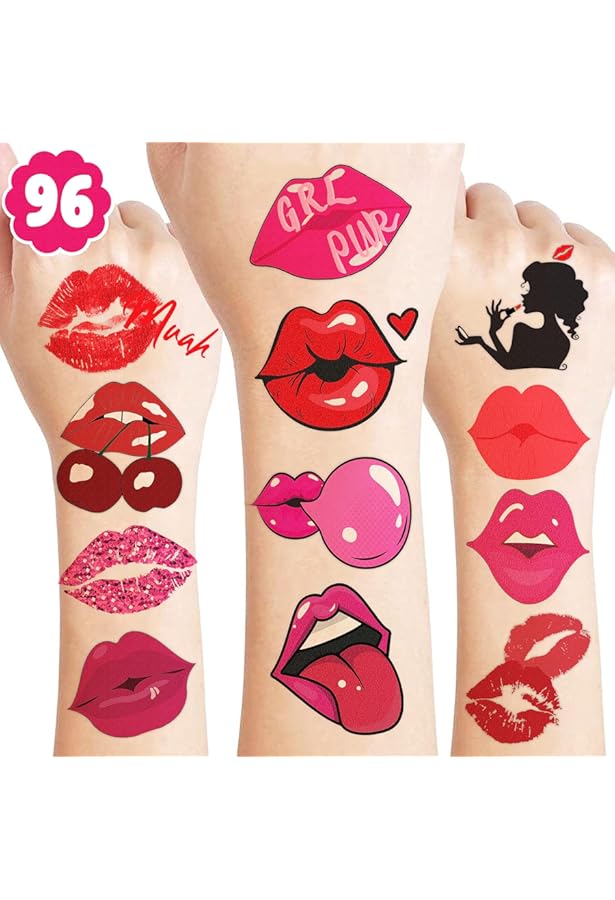 Amazon Com Trendy Lip Stickers Temporary Tattoo Lips Temporary Tattoos Transfer Stickers Mixed Designs Lip Sticker Sexy Red Black Striation Safe Funny Mouth Sticker For Stage Nightclub Party Decoration Beauty Personal